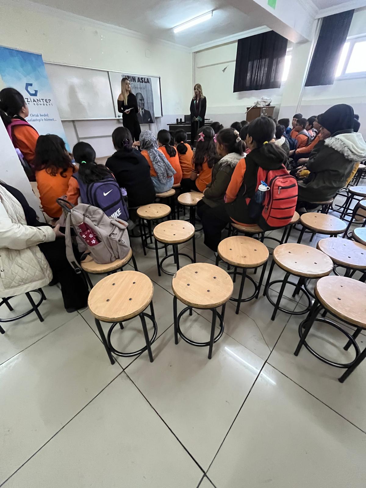 Etkinlik, Dünya Çocuk Hakları Günü dolayısıyla Gaziantep Barosu Çocuk Hakları Komisyonu avukatlarının öğrencilere temel haklarını anlattığı bilgilendirici oturumla devam etti. Program kapsamında ayrıca, desteğe ihtiyaç duyan ilkokul öğrencilerine çanta ve kırtasiye malzemeleri hediye edildi.